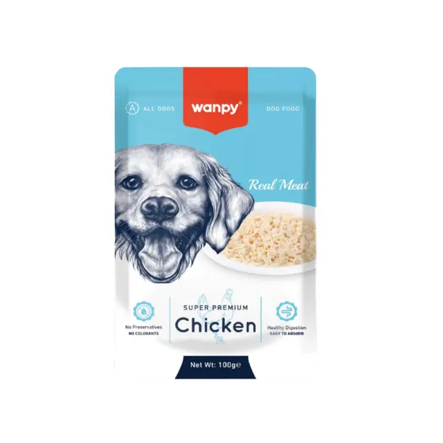 پوچ سگ ونپی مدل "Wanpy Super Premium" با طعم مرغ وزن 100 گرم (انگلیسی)