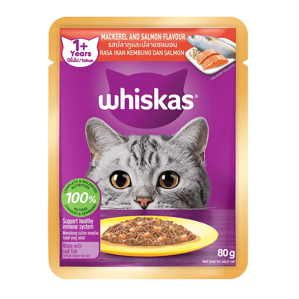 پوچ گربه ویسکاس مدل "Whiskas Tasty Mix" با طعم مرغ، سالمون و جلبک دریایی وزن 85 گرمناموجود
