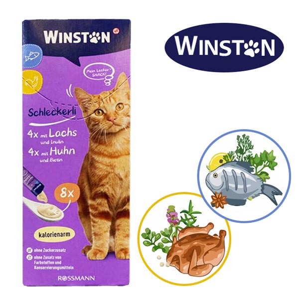 بستنی گربه وینستون "Winston" با طعم ماهی قزل آلا و مرغ و بیوتین بسته 8 عددی