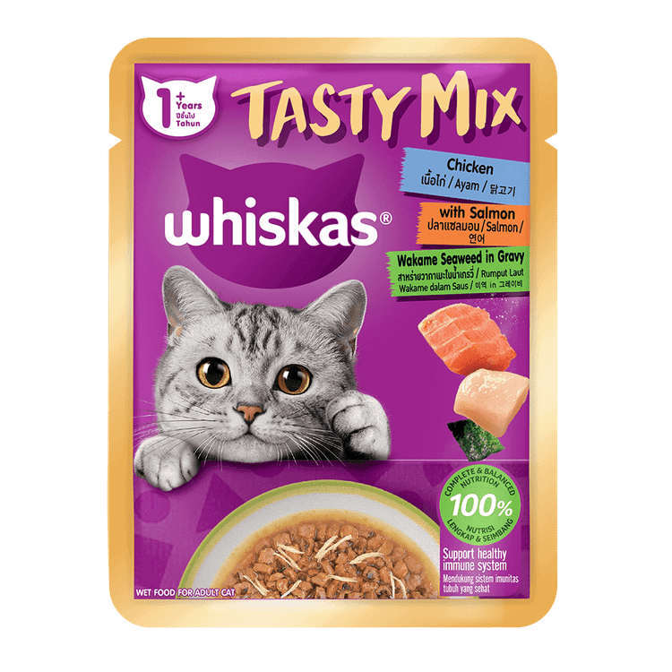 پوچ گربه ویسکاس مدل Tasty Mix طعم مرغ، سالمون و جلبک دریایی در یک نگاه: