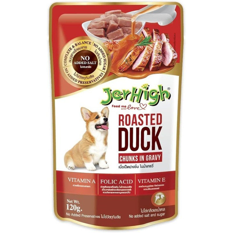 پوچ سگ جرهای "Jerhigh" با طعم تکه های گوشت اردک رست شده در سس وزن 120 گرم