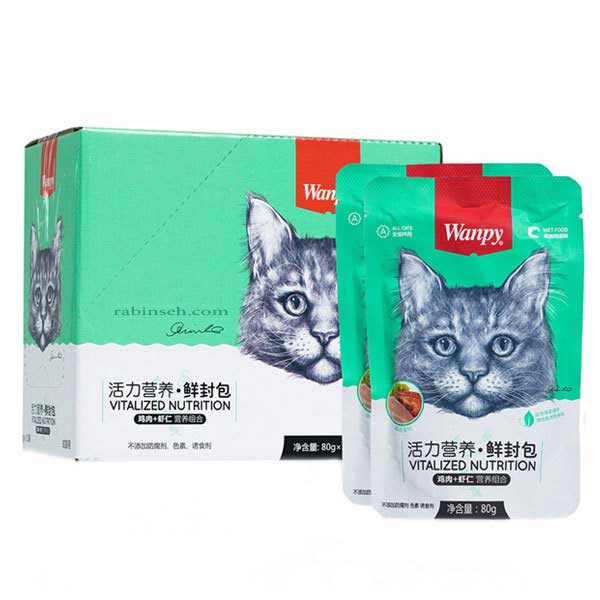 پوچ گربه ونپی "Wanpy" با طعم مرغ و میگو بسته 10 عددی وزن 80 گرم