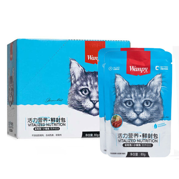 پوچ گربه ونپی "Wanpy" با طعم ماهی تن و ماهی سفید بسته 10 عددی 80 گرم