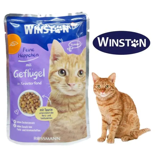 پوچ گربه وینستون "Winston" با طعم ماکیان (پرنده های اهلی و وحشی) درعصاره گیاهی وزن 100 گرم
