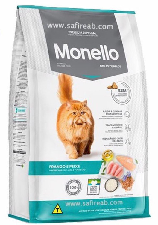 غذای خشک گربه بالغ مونلو مدل "Hairball" با طعم گوشت پرنده و ماهی: