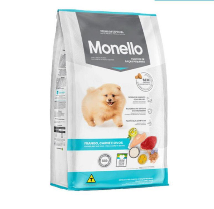 این محصول از مخلوط مرغ، گوشت گاو و تخم مرغ و روغن ماهی سالمون تشکیل شده است. افزودن روغن سالمون اثرات مثبتی بر رشد شناختی دارد که برای رشد سالم ضروری است. این فرمول همچنین حاوی تخم مرغ پودر شده است. این ماده بهترین منبع پروتئین در نظر گرفته میشود و باعث حفظ منظم ماهیچهها و رشد متعادل تولهها میشود، بنابراین تمام حمایتهای لازم را در مرحله اولیه زندگی آنها فراهم میکند. افزودن مانان-الیگوساکارید (MOS) همچنین می تواند جذب و استفاده از مواد مغذی را افزایش دهد. علاوه بر این، توله سگ نژاد کوچک Monello به دلیل داشتن عصاره Yucca Schidigera در فرمول خود، محیط داخلی بهداشتی تری را تضمین می کند که به کاهش حجم و بوی مدفوع کمک می کند. همچنین این محصول بدون مواد نگهدارنده و رنگ مصنوعی، سرشار از ویتامین های گروه B و امگا 3 و امگا 6 می باشد.